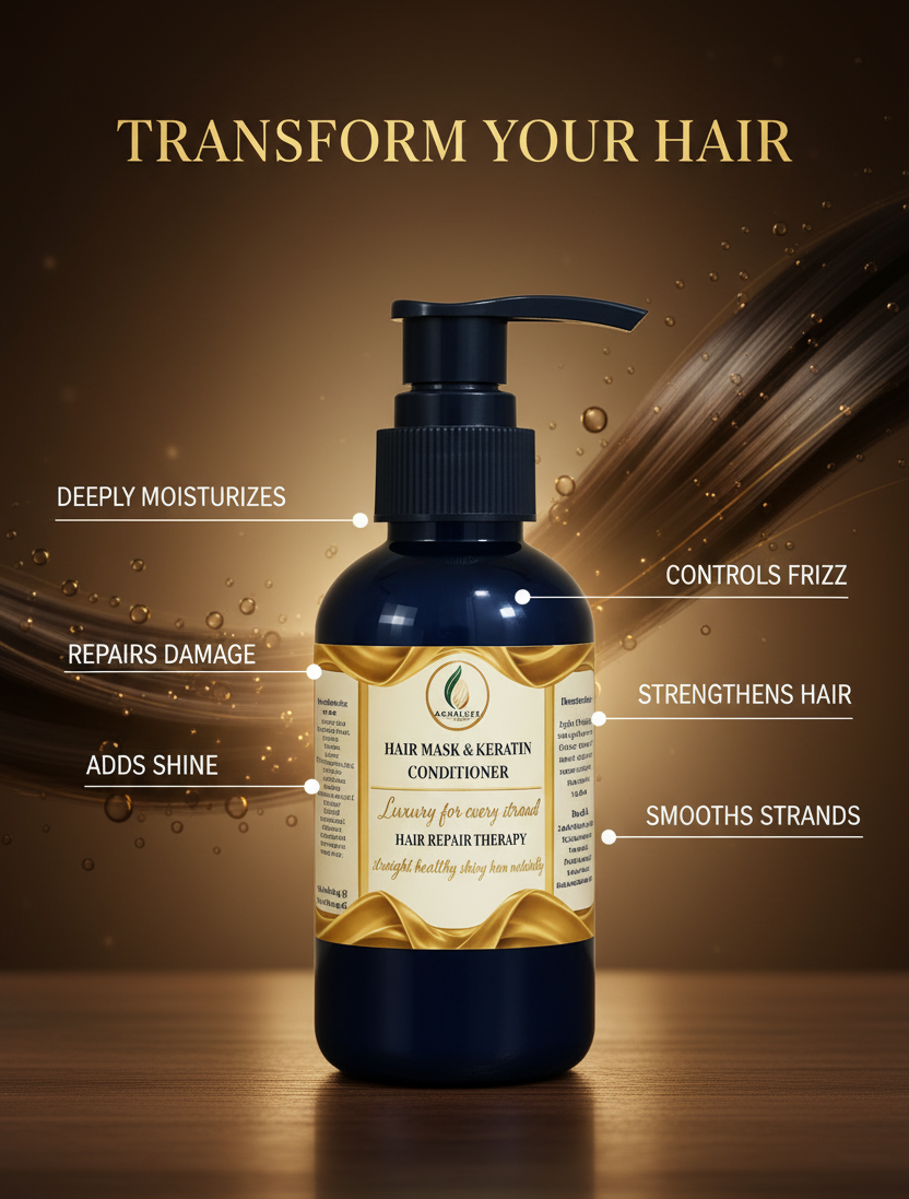 Experience the ultimate hair revival with the Aqualuxe Nourishing Hair Mask, expertly crafted to restore strength, shine, and softness from root to tip. Infused with biotin, argan oil, and keratin, designed for all hair types.